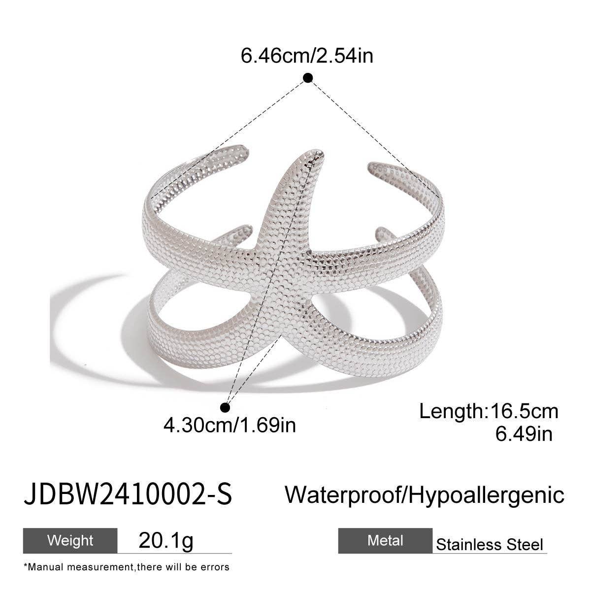 Experience versatile styling with the 18K Gold Hammered Starfish Open Bangle No Fade, crafted to adapt effortlessly.