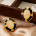 The 18K Gold Oval Cross Natural Stone Earrings adds a refined touch with its clean and modern silhouette.