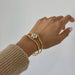 Discover the 18K Gold Pearl Floral Double Layer Cuff Bracelet, a piece designed to blend style and everyday comfort.