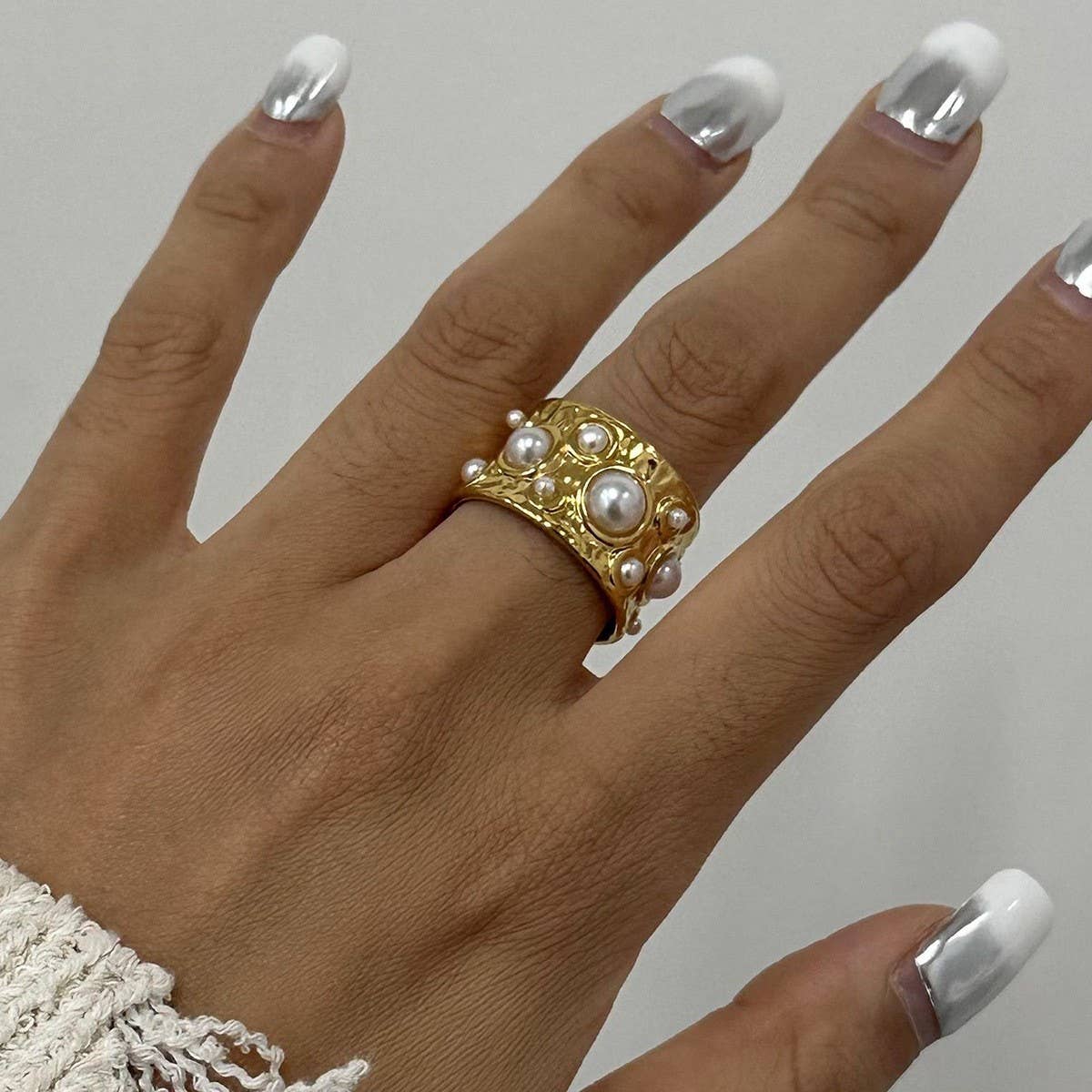 The 18K Gold Pearl Hammered Open Cuff Bracelet brings a fresh balance of structure and ease into your wardrobe.
