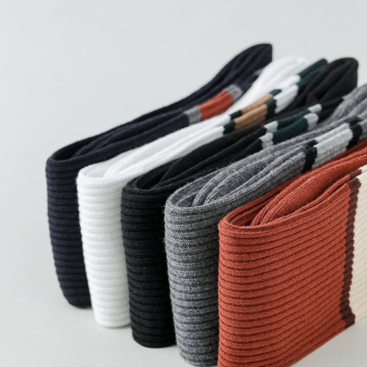The 2024 New Color Contrast Striped Mid Calf Socks adds a refined touch with its clean and modern silhouette.