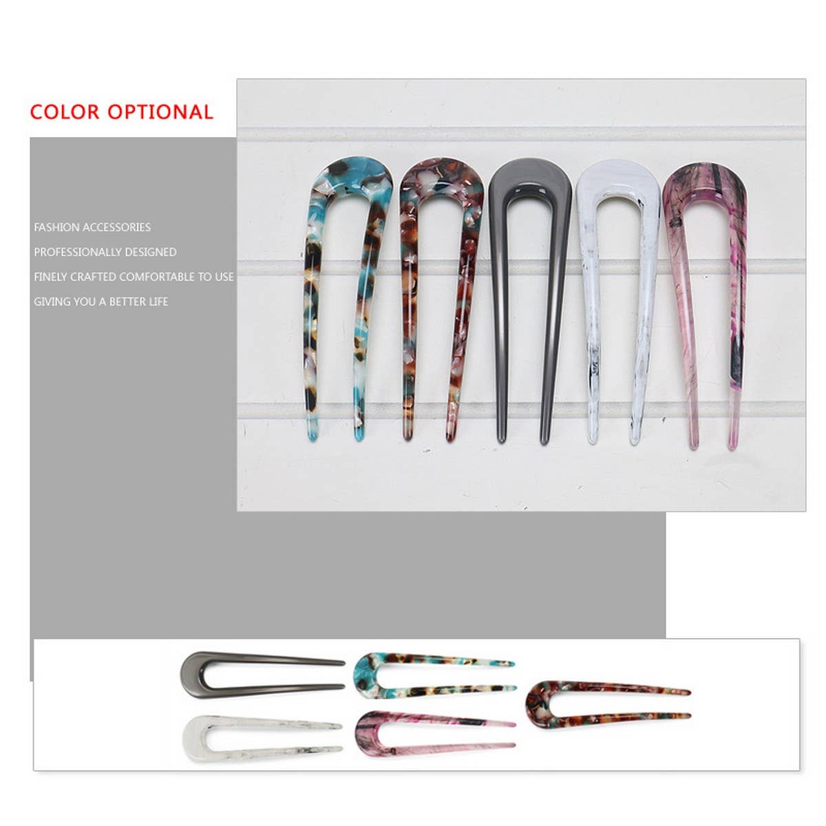 The Acetate Sheet 5Mm Thick Plate U Shape Hairpin brings a fresh balance of structure and ease into your wardrobe.