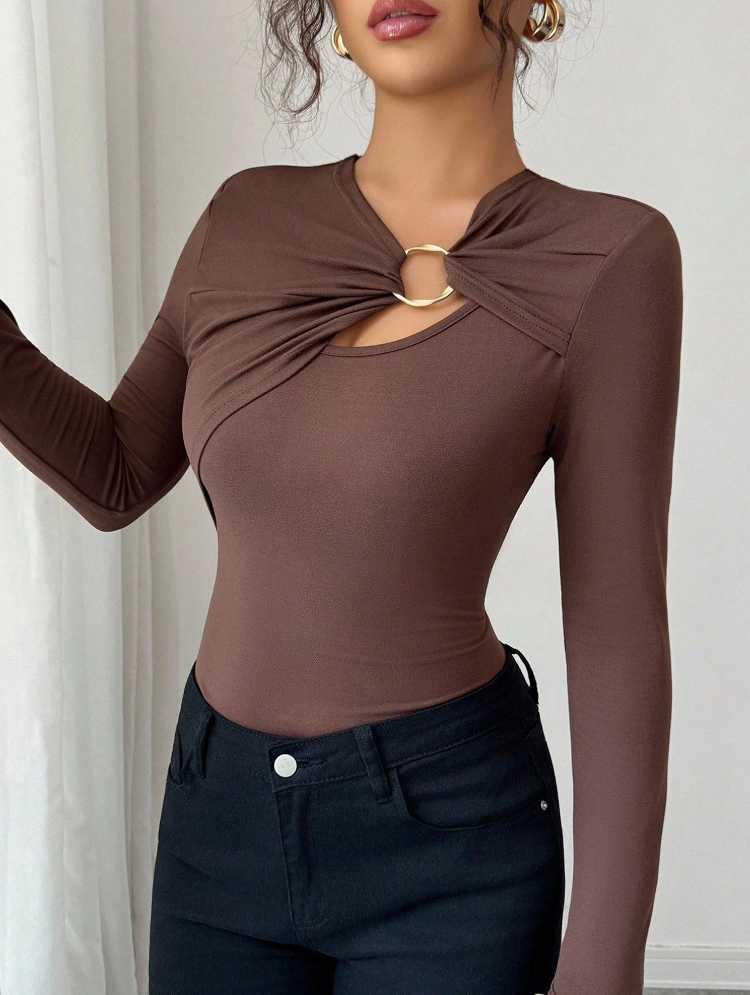 Asymmetric cutout slim-fit top