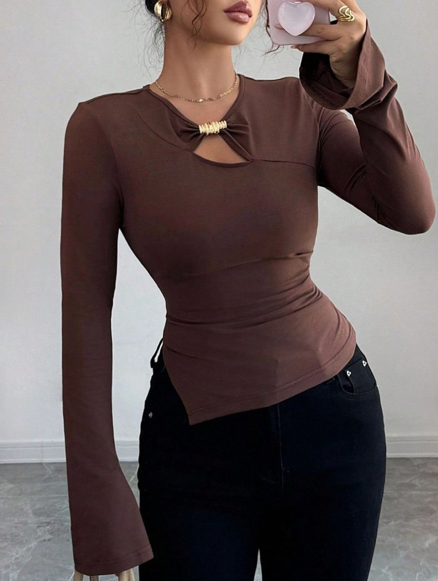 Asymmetrical openwork metal-decorated shirt