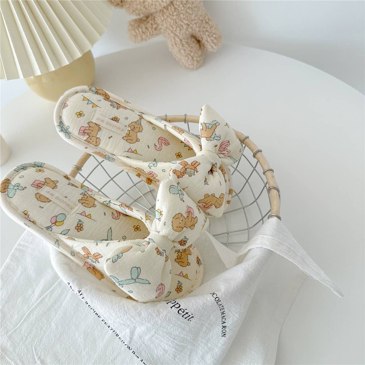 BIRTHDAY DOG BOWKNOT WOMENS HOME SLIPPERS_CWMM2971