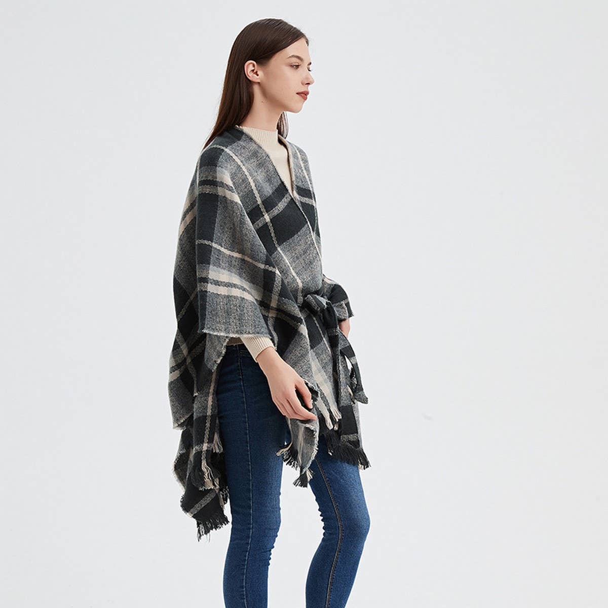 Designed for everyday use, the Black And White Line Cardigan Shawl Cloak offers fluid movement and timeless appeal.