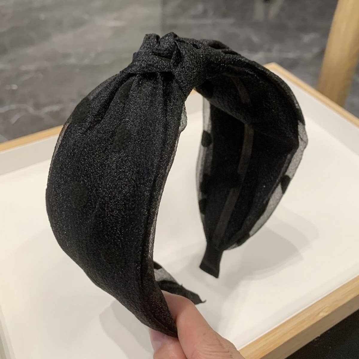 The Black Big Bow Polka Dot Headband adds a refined touch with its clean and modern silhouette.