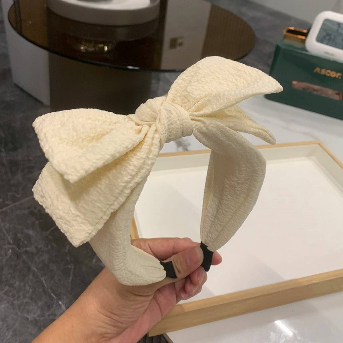 BLACK BUBBLE WRINKLED WIDE BRIM HEADBAND_CWAHA2561