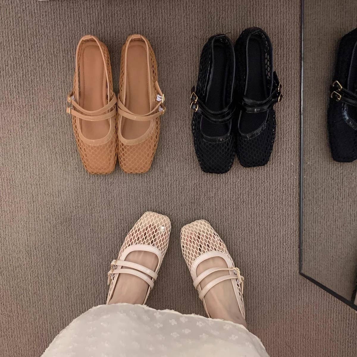 The Black Mesh Mary Jane Sandals For Women adds a refined touch with its clean and modern silhouette.
