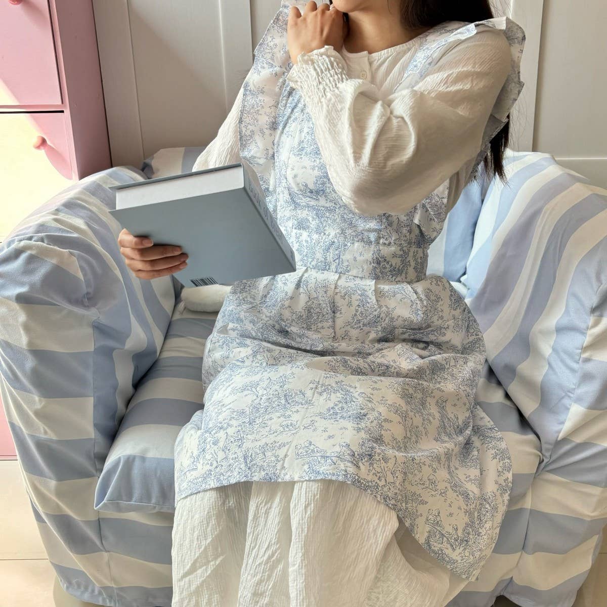 Discover the Blue Ink Fishtail Cotton Ruffle Apron, a piece designed to blend style and everyday comfort.