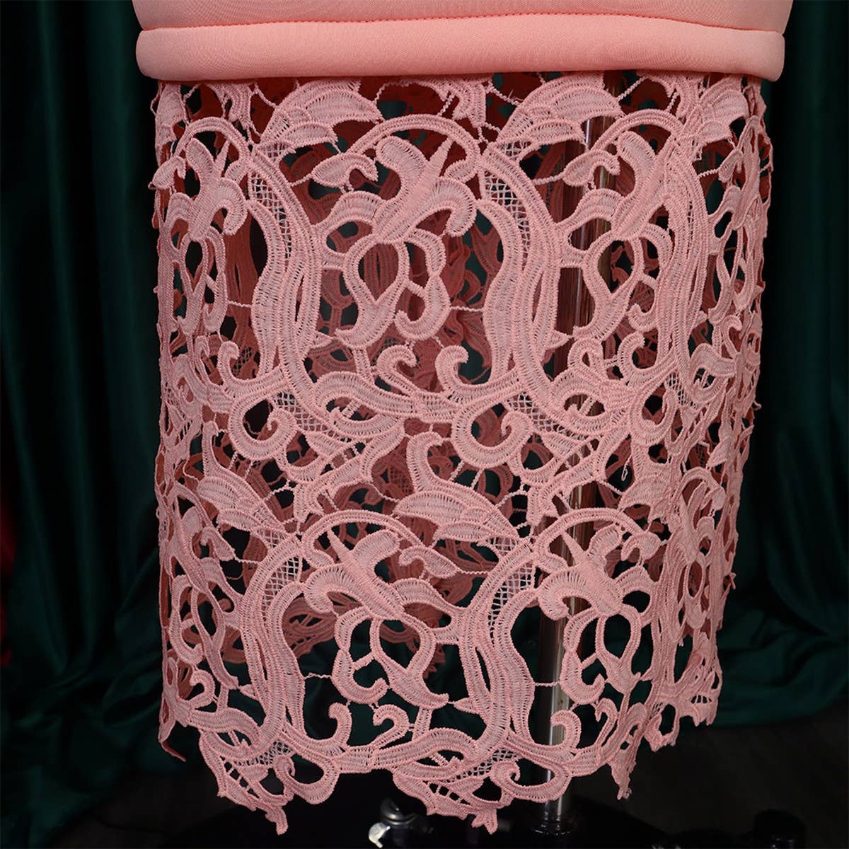 A polished essential, the Boat Neck Lace Patchwork Lantern Sleeve Dress transitions seamlessly from casual to elevated looks.