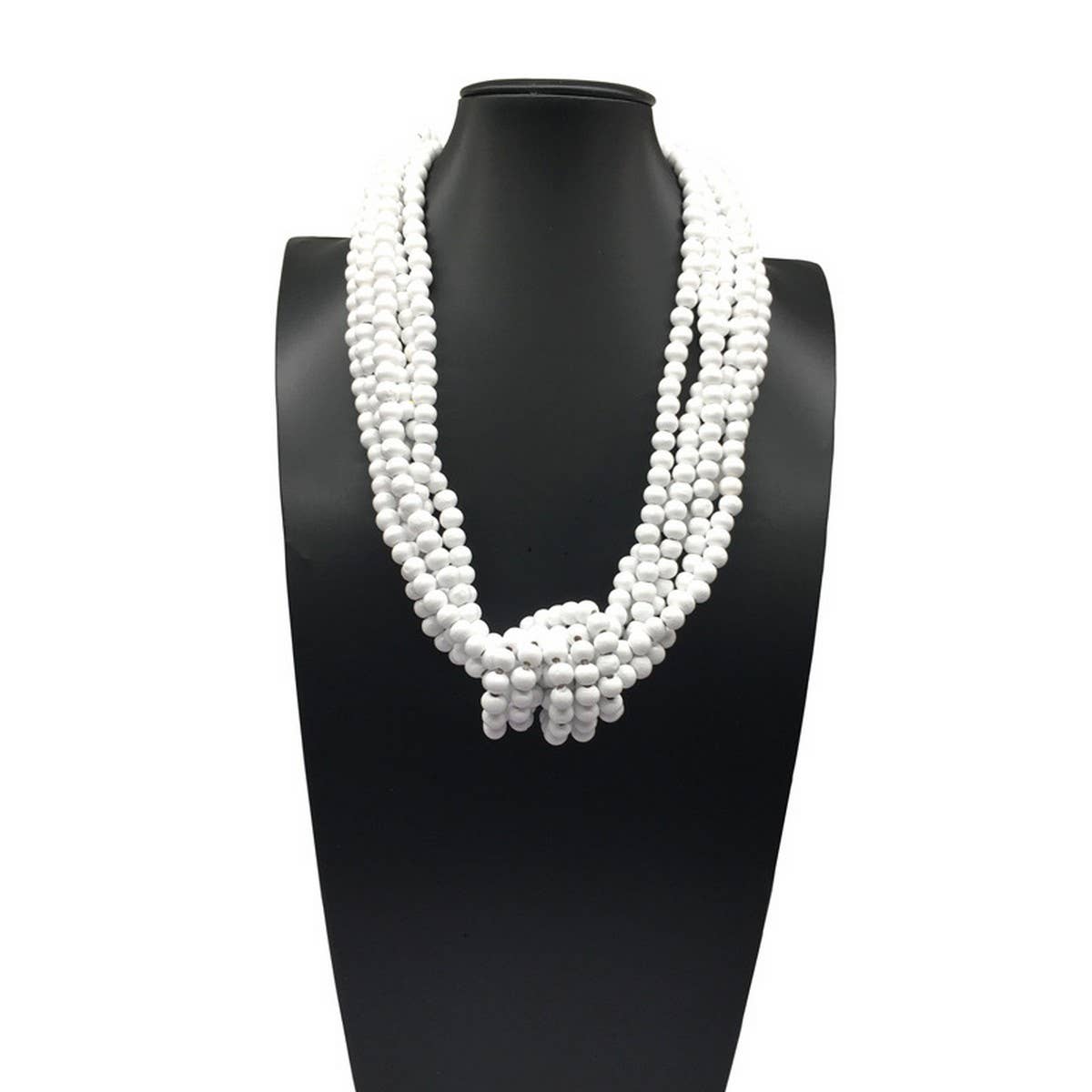BOHEMIAN MULTI LAYER WOODEN BEAD KNOT NECKLACE_CWMM4735