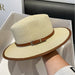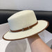 The British Style Flat Top Fashionable Belt Straw Hat adds a refined touch with its clean and modern silhouette.