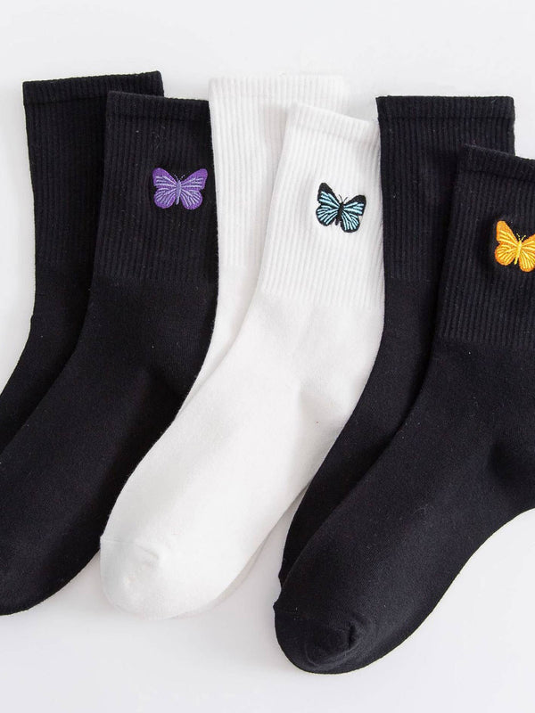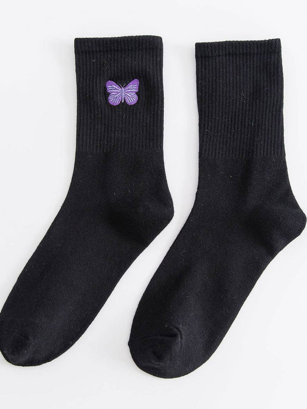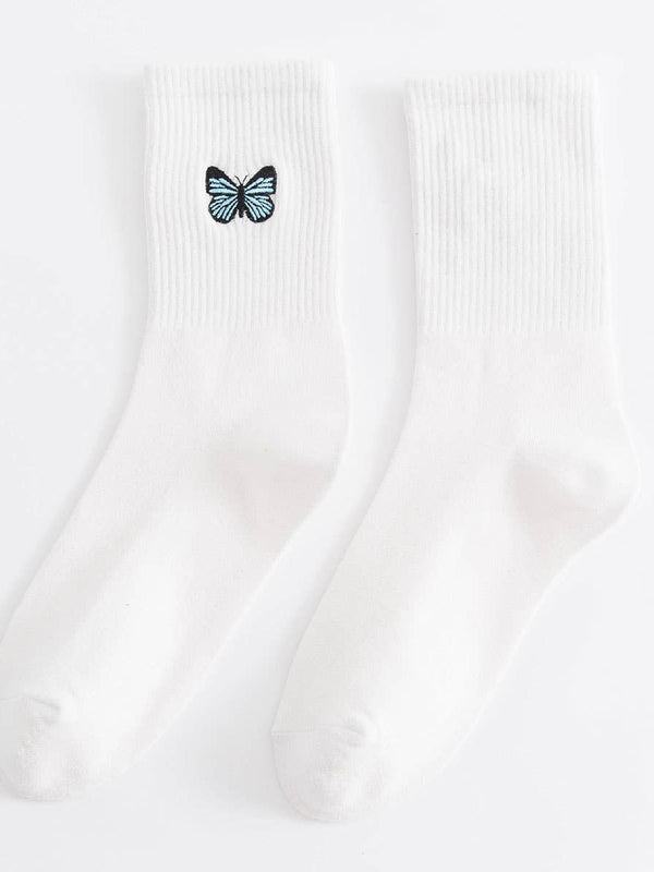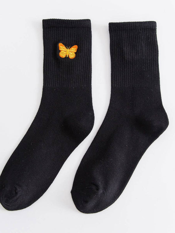Discover the Butterfly Embroidery Crew Socks For Womens, a piece designed to blend style and everyday comfort.