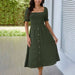 BUTTON-EMBELLISHED PLEATED DRESS_CWDSD3554