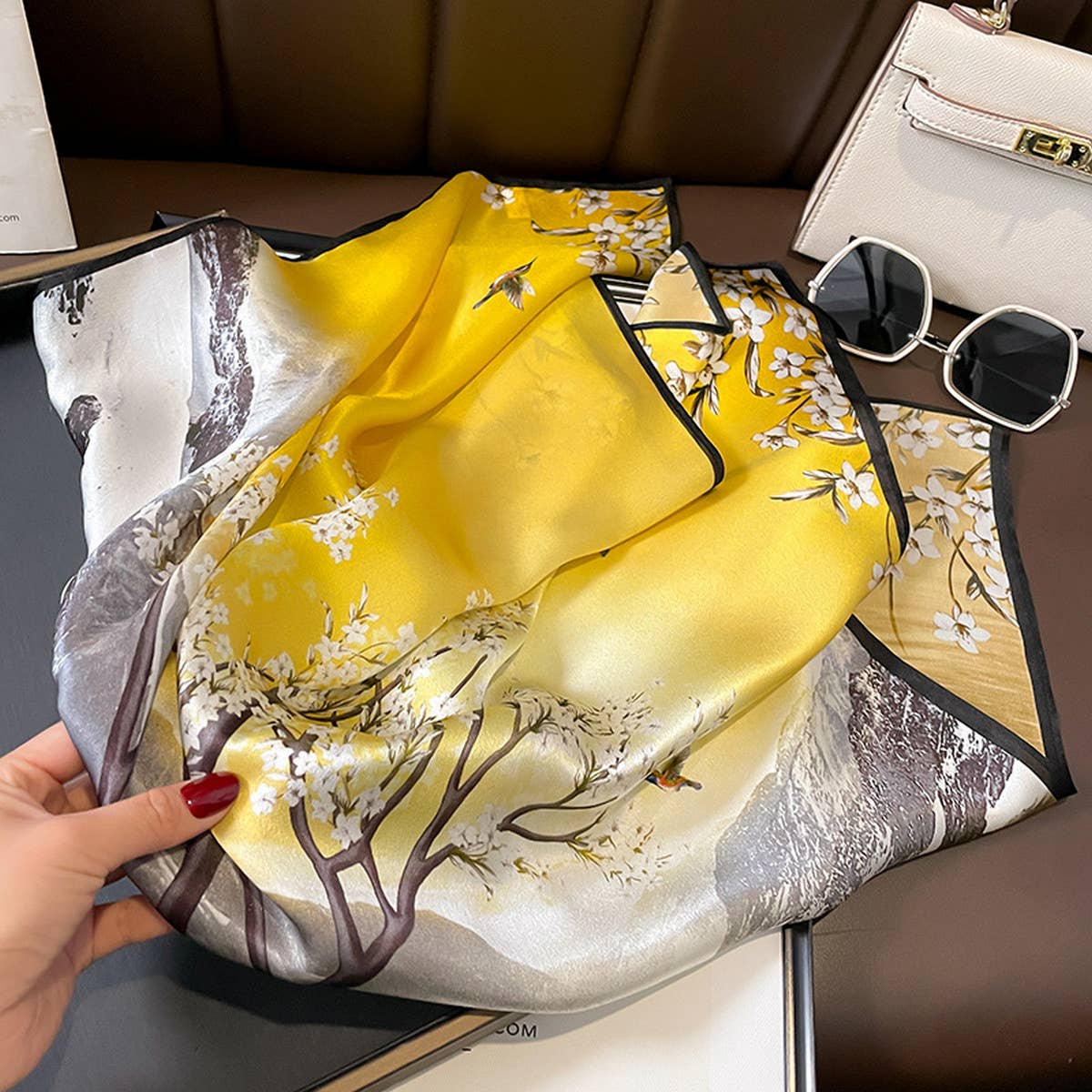 Experience versatile styling with the Camellia Silk Scarf French Retro Square Wrap, crafted to adapt effortlessly.