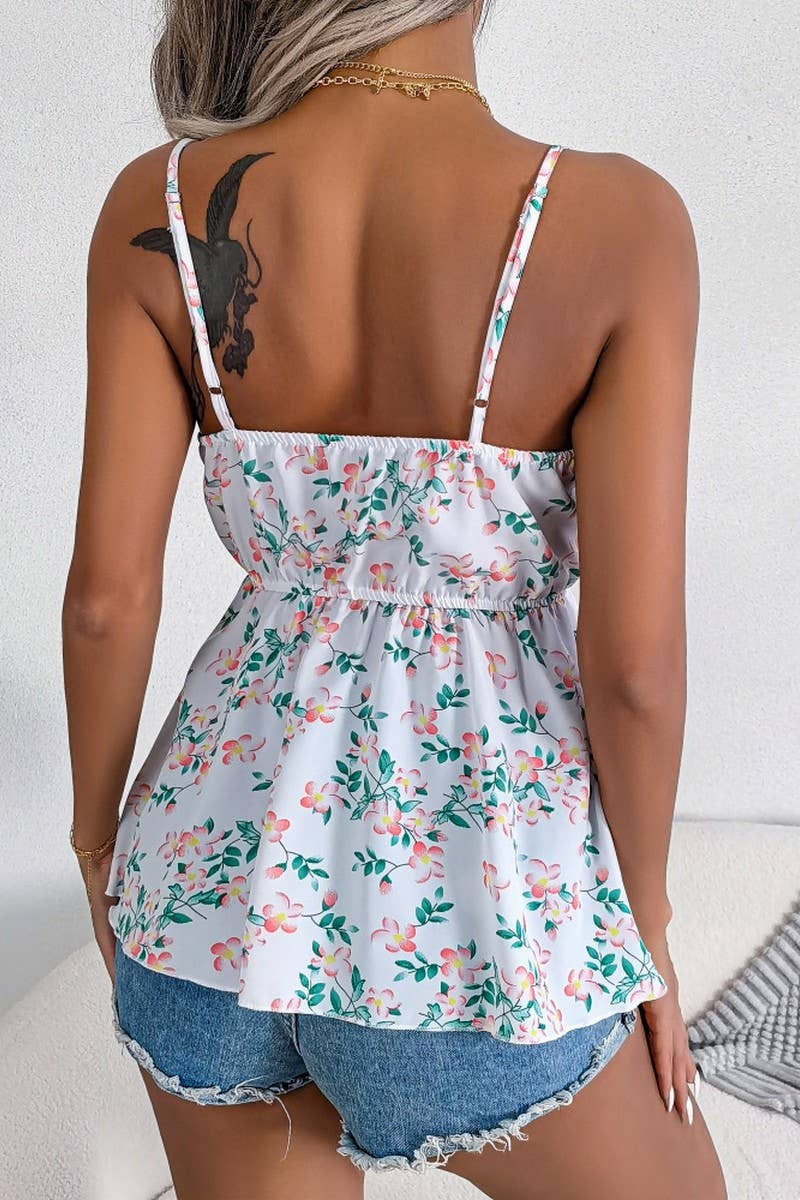 xCASUAL FLORAL WAISTBAND CHIFFON SHIRT