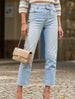 Casual high-waisted washed straight-leg jeans