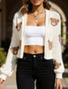 Casual long-sleeved short-length bear knit cardigan