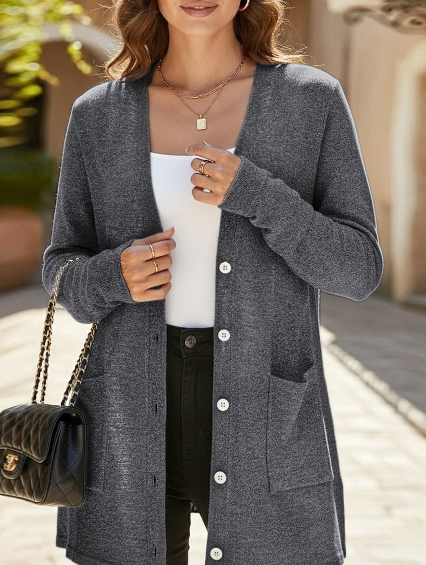 Casual loose long-sleeved pocket cardigan