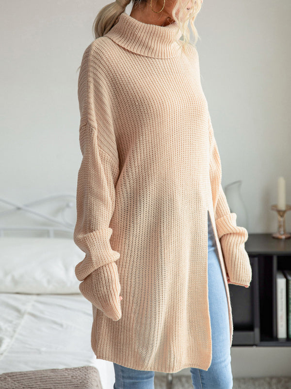 Casual mid-length split turtleneck sweater