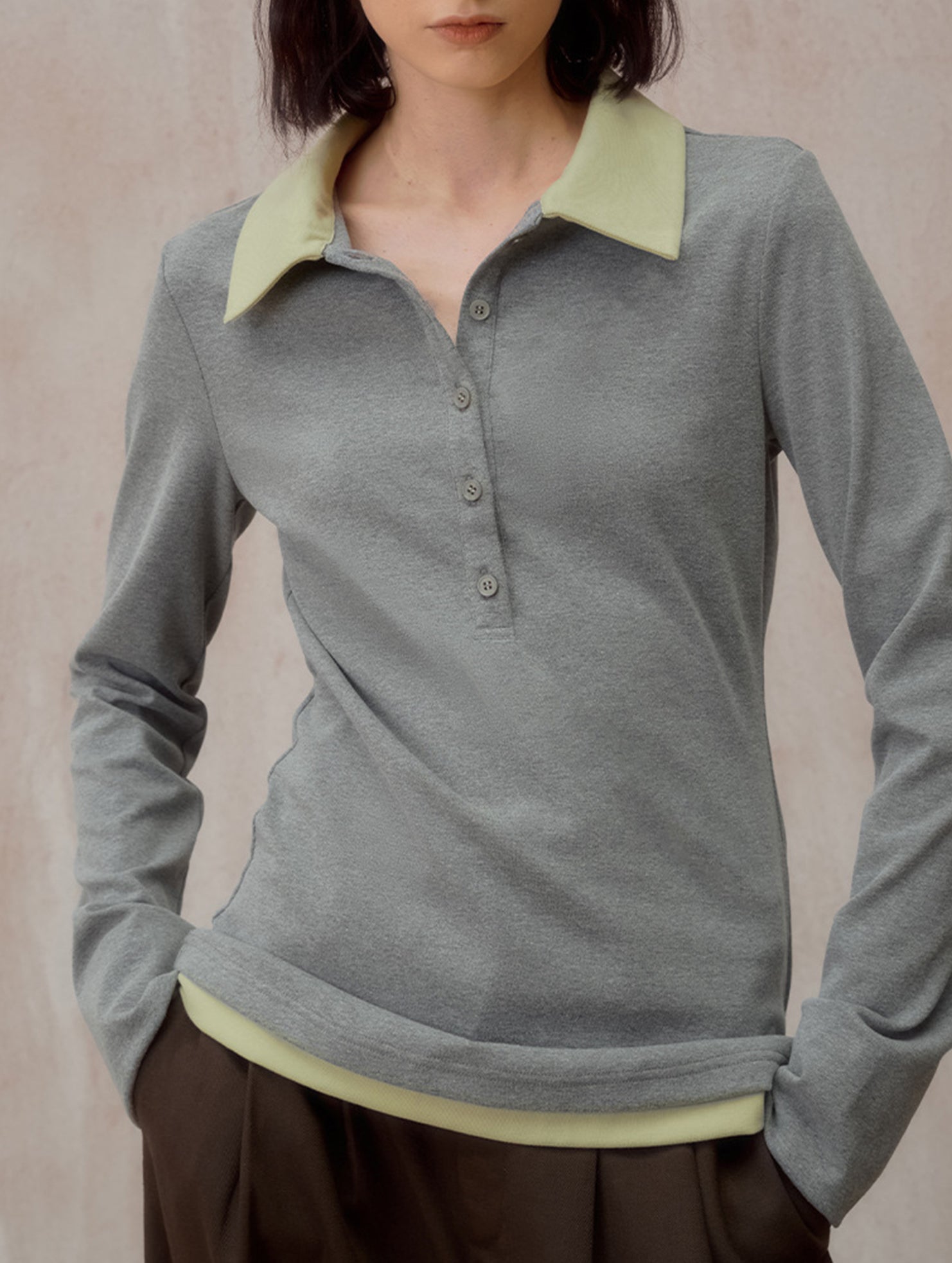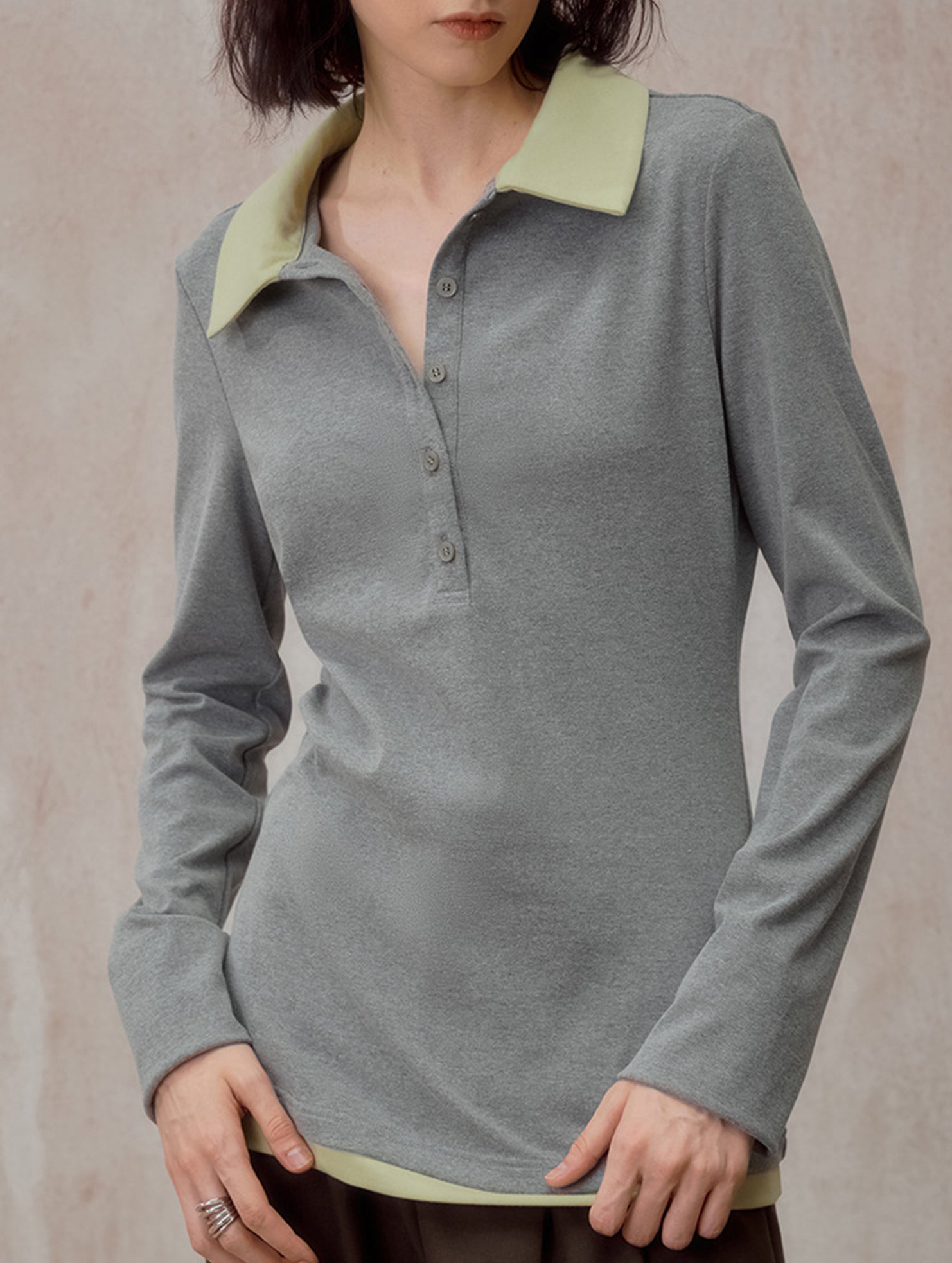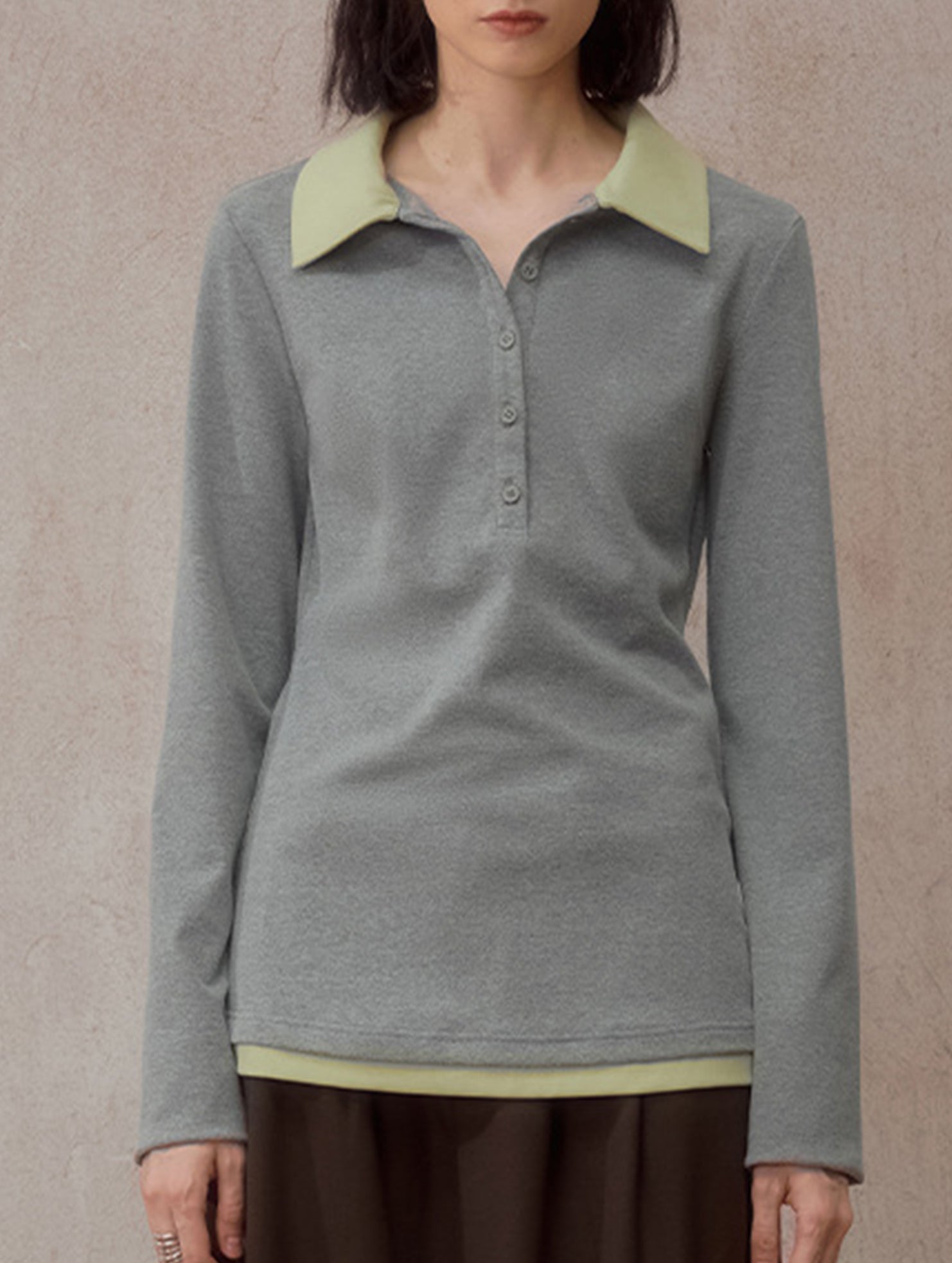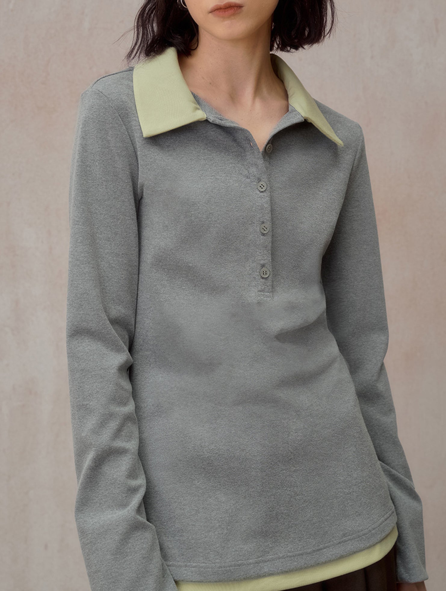 Color Block Faux Two Piece Polo Tee_CWTTL01218