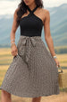 COLOR MATCHING CROSS HANGING NECK STRAP DRESS_CWDSD2896