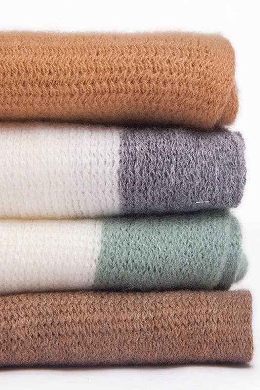 Colorblock Knit Scarf Long Fringe Winter Wrap