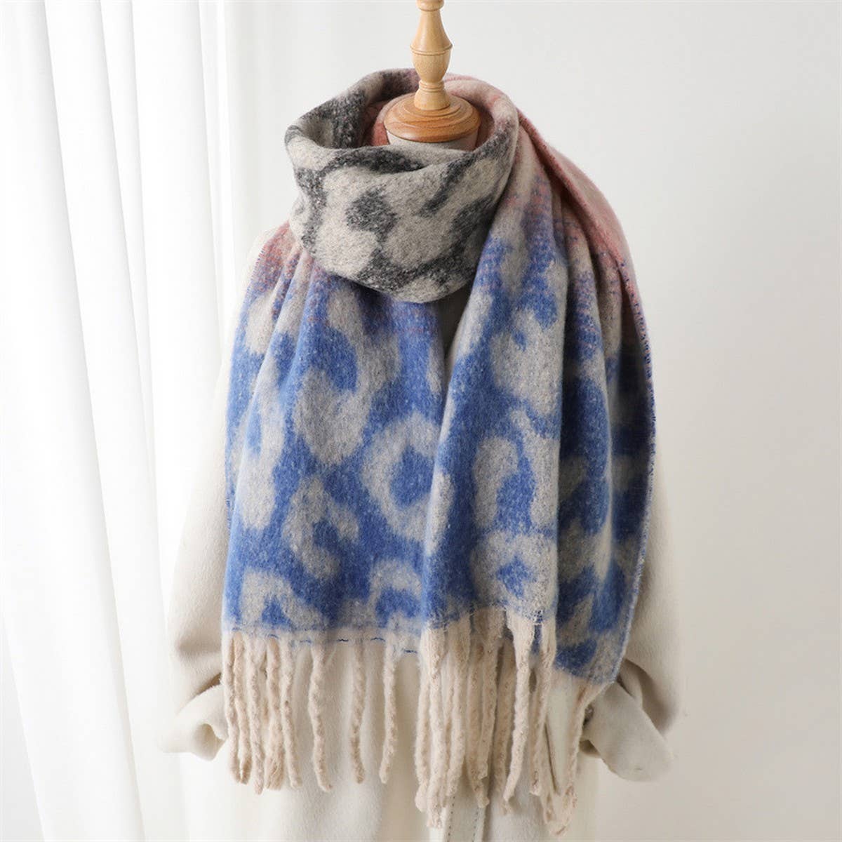 A polished essential, the Colorful Leopard Gradient Scarf With Tassels transitions seamlessly from casual to elevated looks.