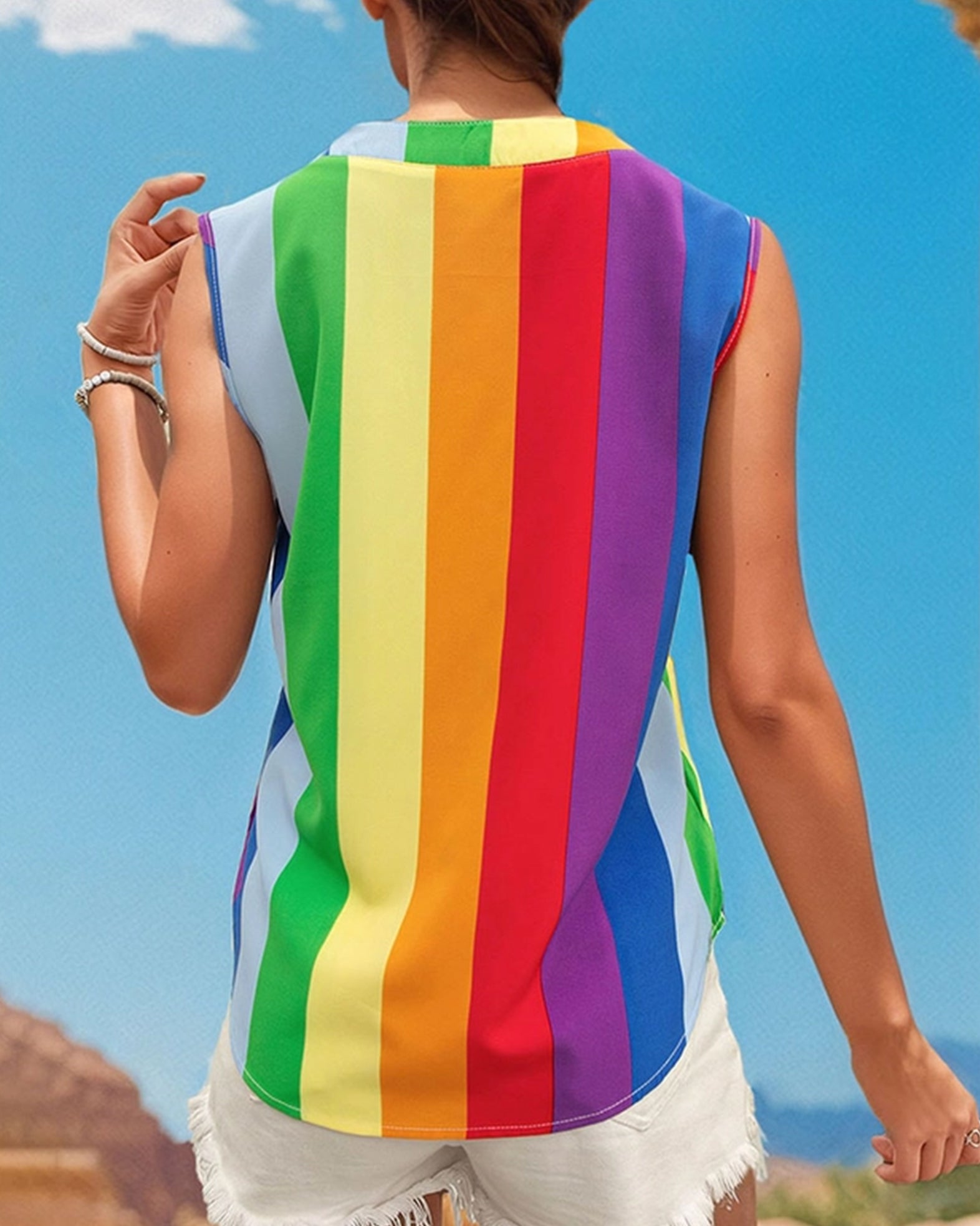 xCOLORFUL STRIPED V-NECK SHIRT BLOUSE