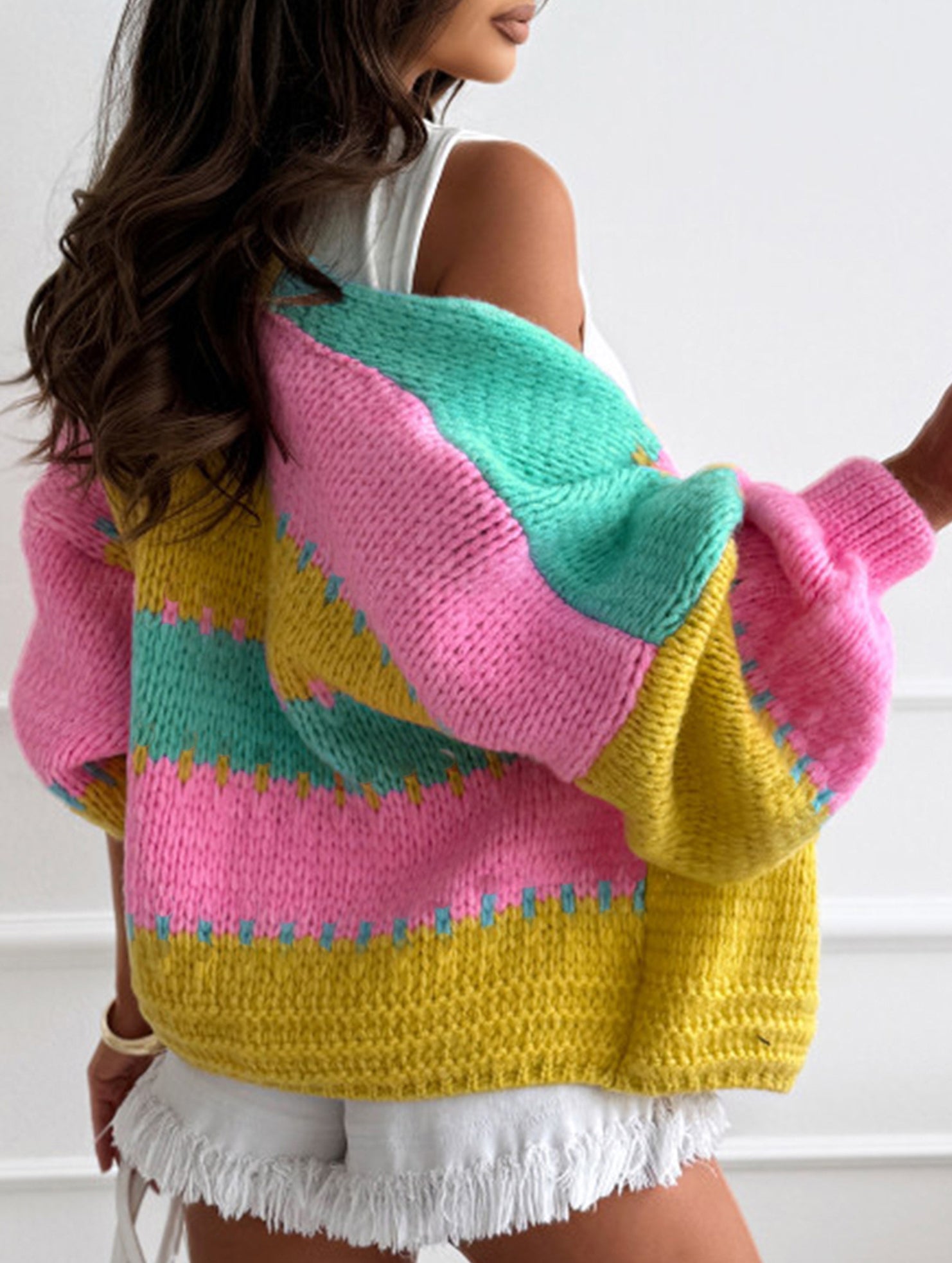 Contrast color panel loose knit cardigan