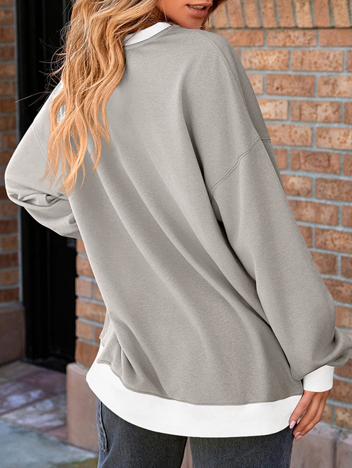Contrast color splicing round neck sweater