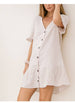 COTTON AND LINEN V-NECK SINGLE-BREASTED DRESS_CWDSD4144