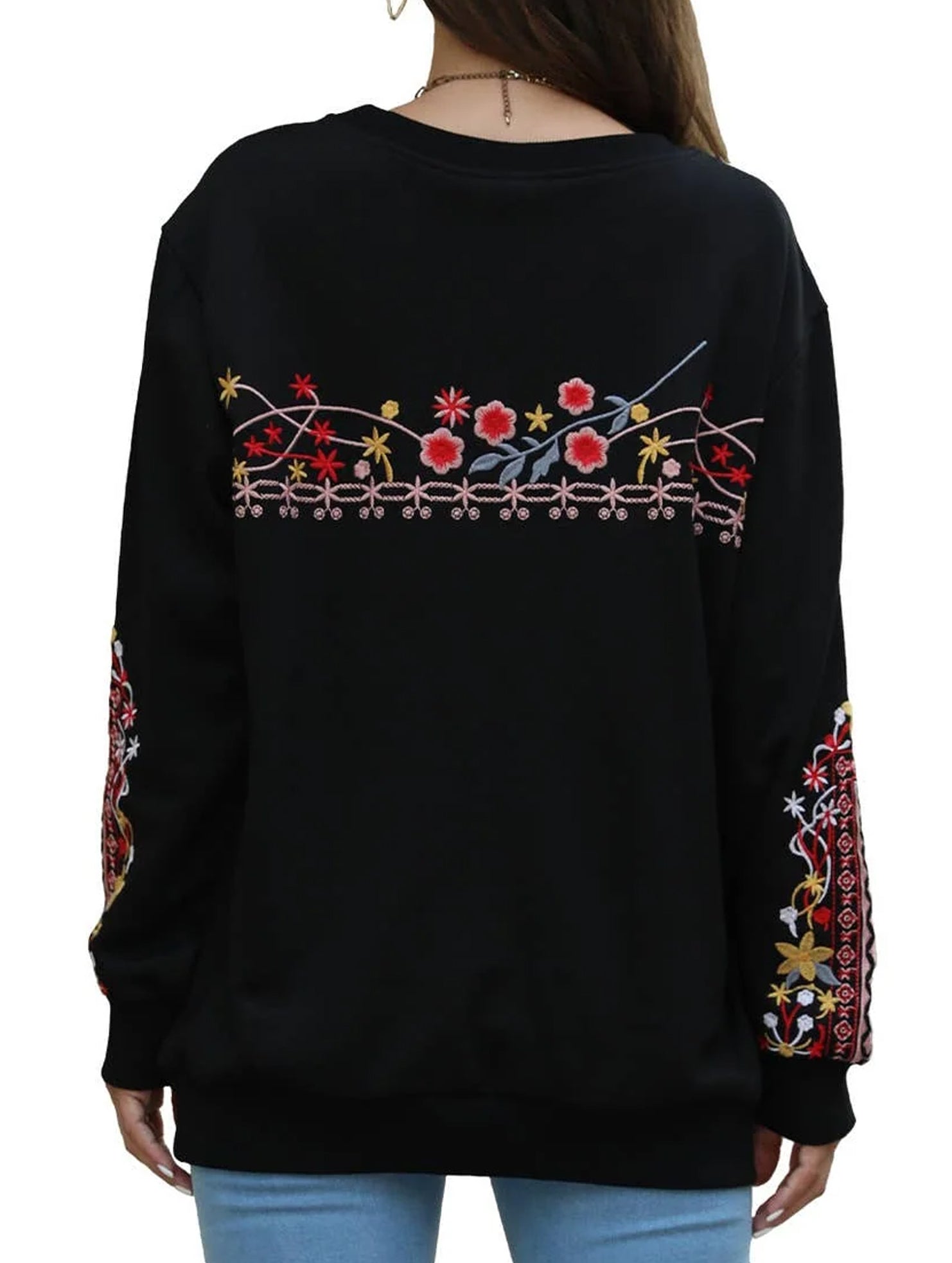 xCotton plus-size V-neck ethnic embroidered hoodie