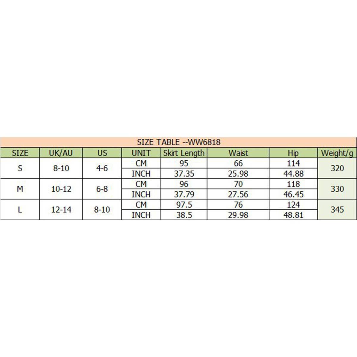 Description & Size Chart