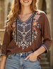 Cotton V-Neck Plus Size Embroidered Blouse | Black and Brown