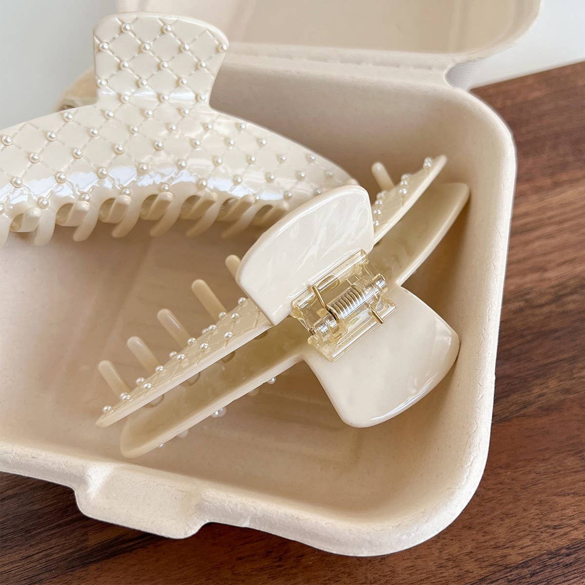 The Cream Pearl Hair Claw Elegant Chic Back Clip adds a refined touch with its clean and modern silhouette.