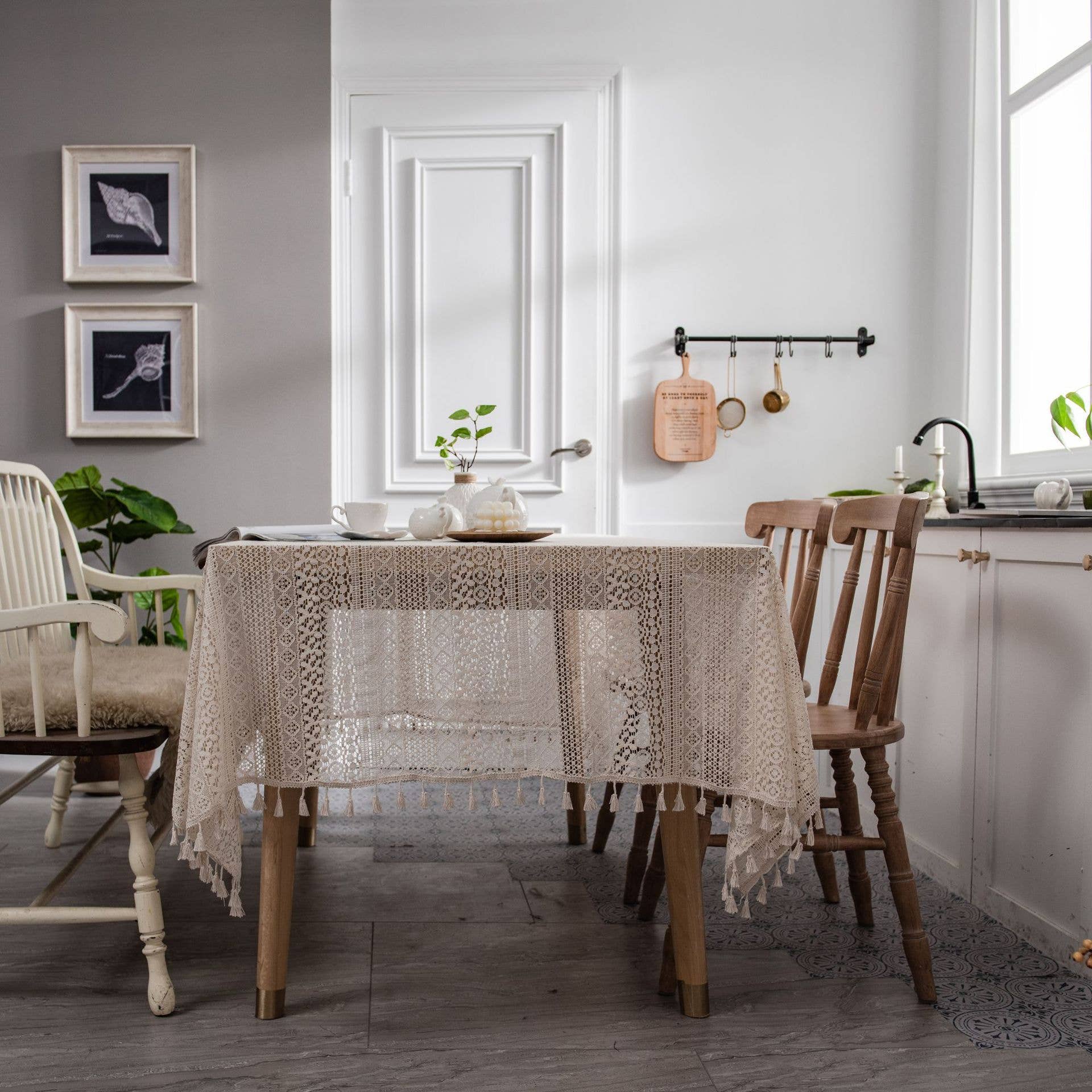 Experience versatile styling with the Crochet Hollow Tablecloths With Tassels, crafted to adapt effortlessly.