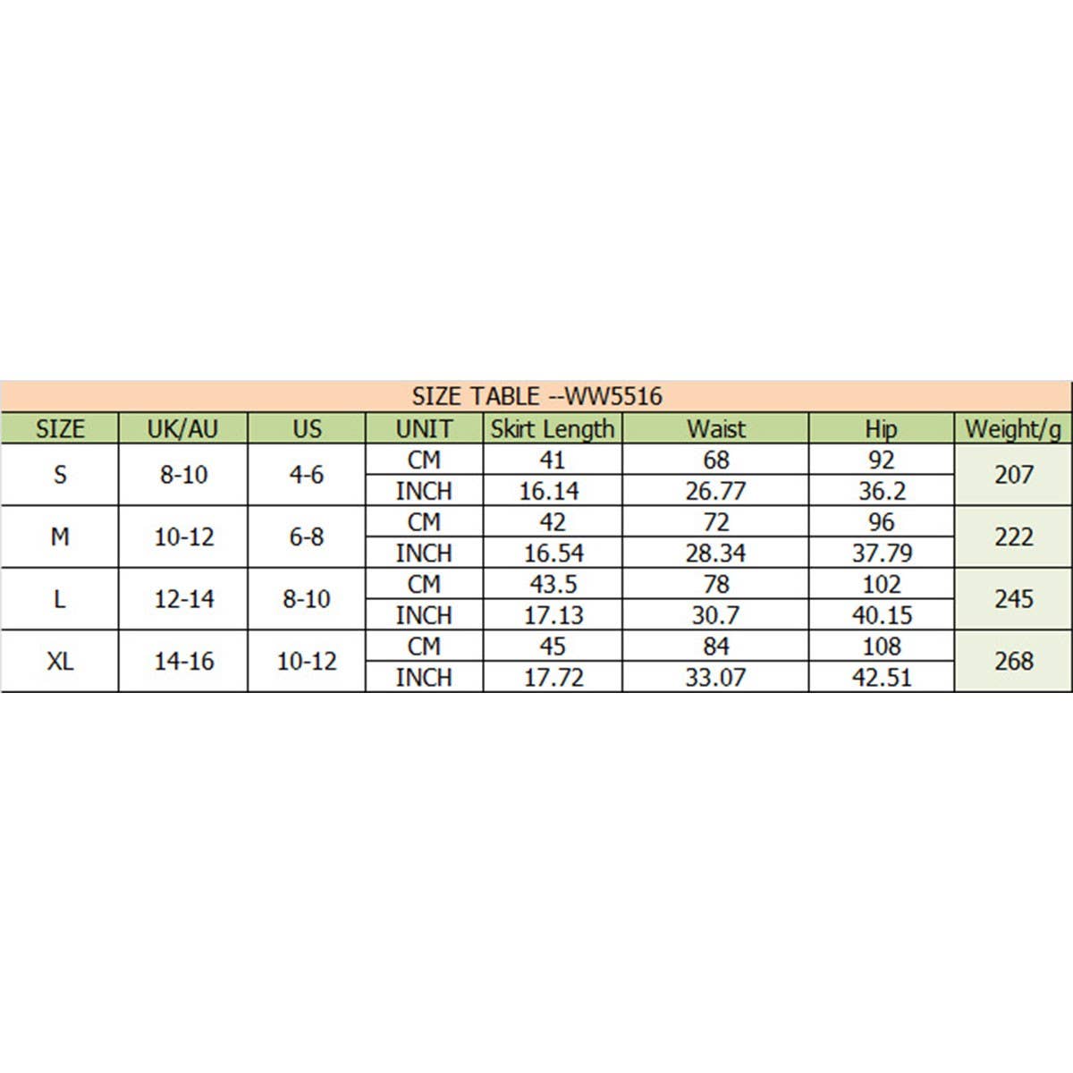 Description & Size Chart