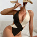 The Cross Contrast One Piece Swimsuit adds a refined touch with its clean and modern silhouette.