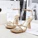 Experience versatile styling with the Cross Strap Sequin Stiletto Sandals, crafted to adapt effortlessly.
