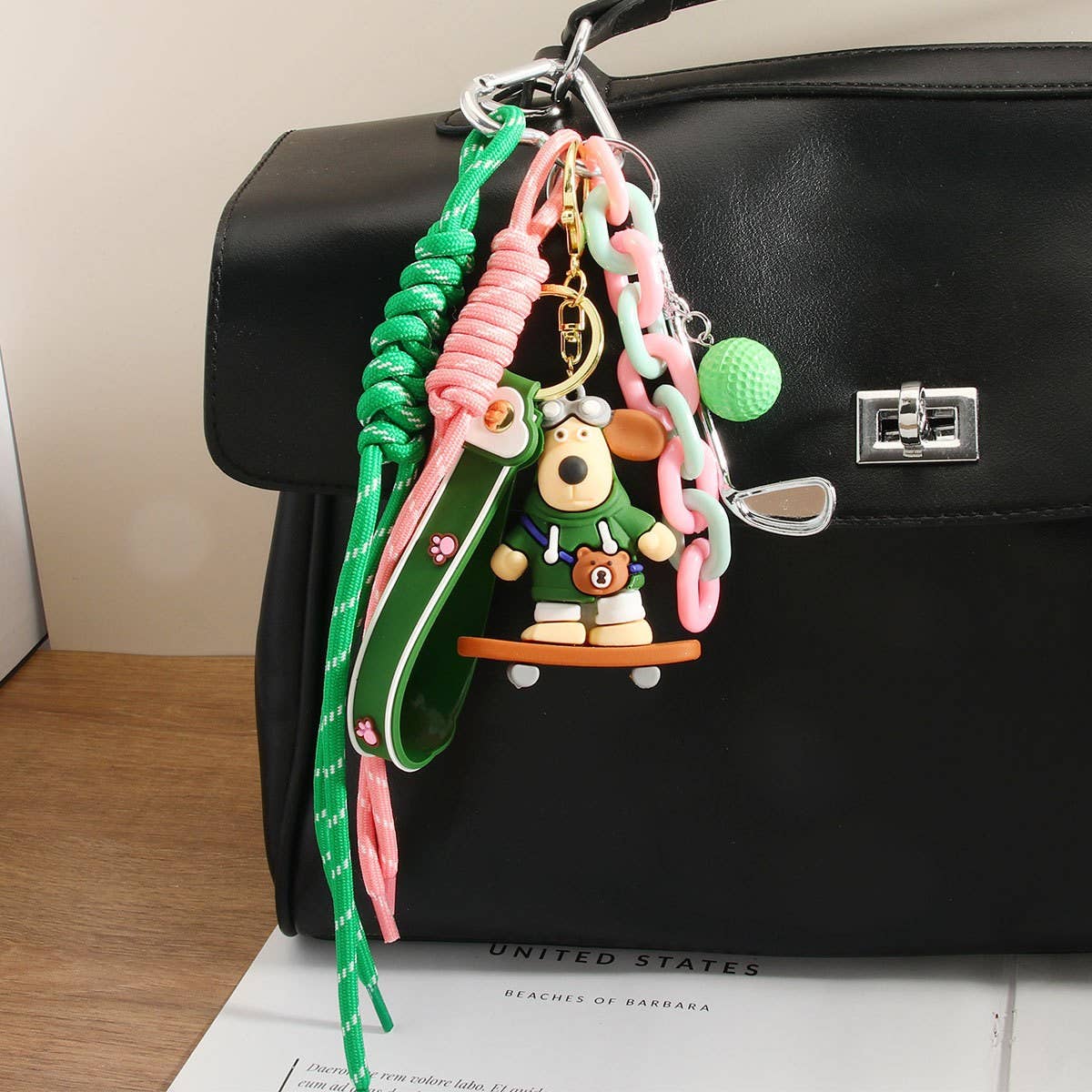 Experience versatile styling with the Cute Cartoon Skateboard Bulldog Keychain Charm, crafted to adapt effortlessly.