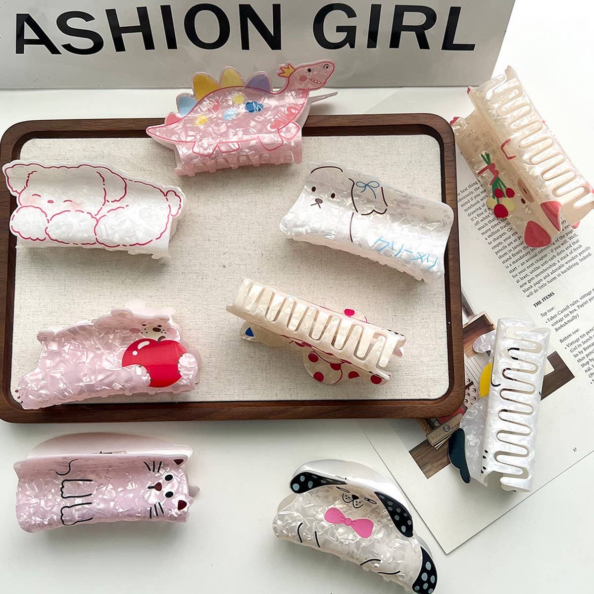 Experience versatile styling with the Cute Dinosaur Pet Hair Claw Acrylic Animal Clip, crafted to adapt effortlessly.