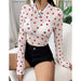 The Cute Heart Print Mesh Round Neck Long Sleeve Top adds a refined touch with its clean and modern silhouette.