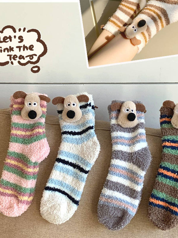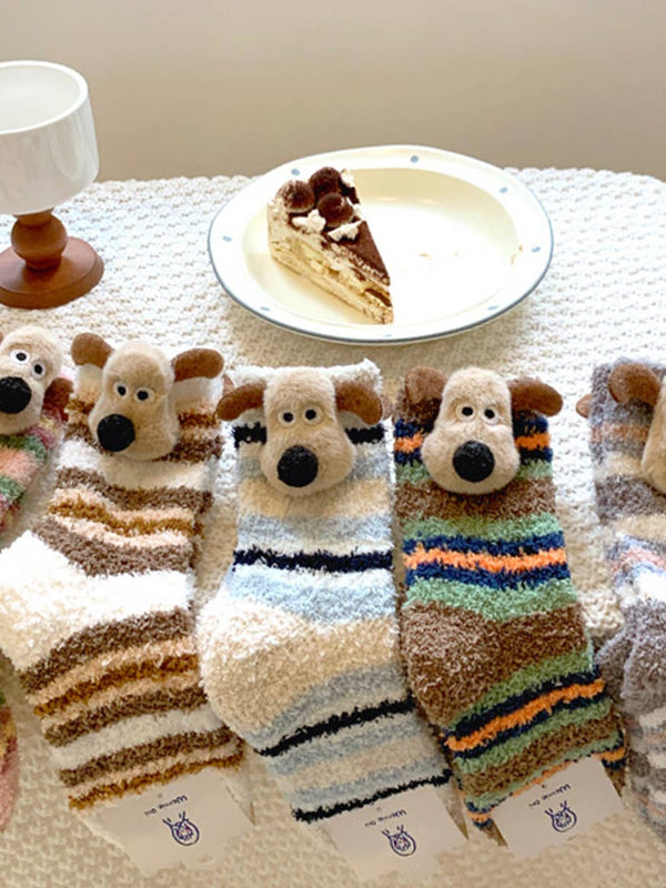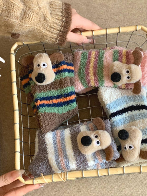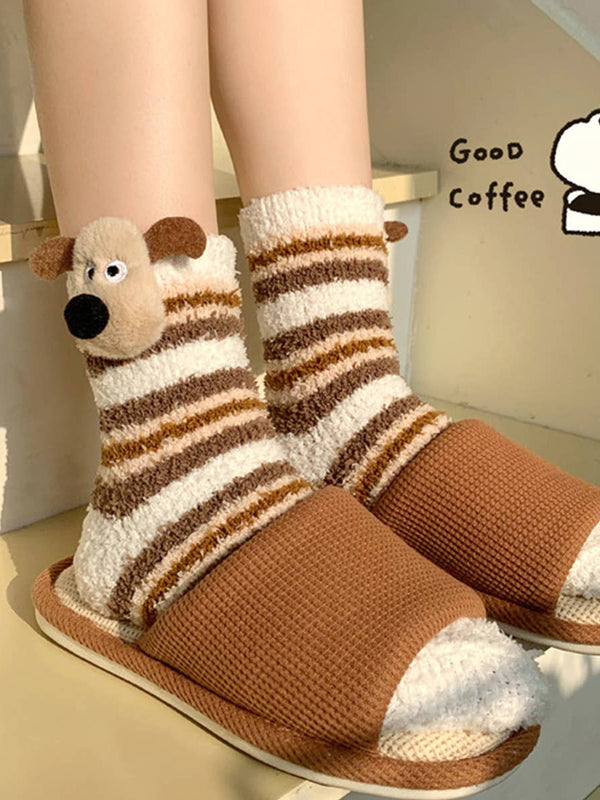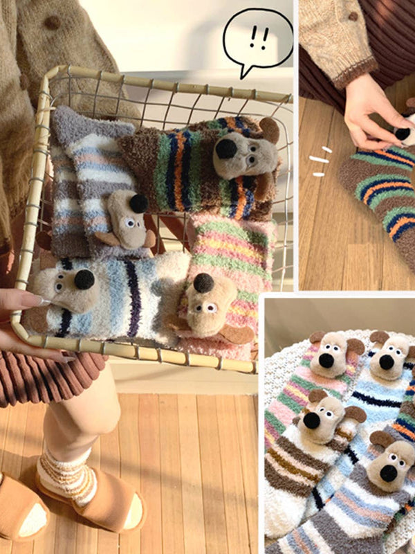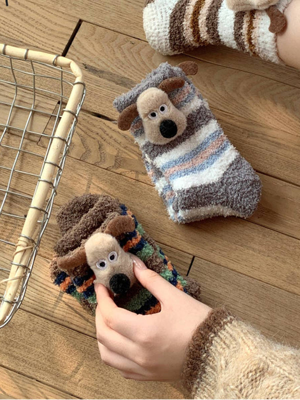 Cute Puppy Fleece 3D Slouchy Floor Socks_Cwms03223