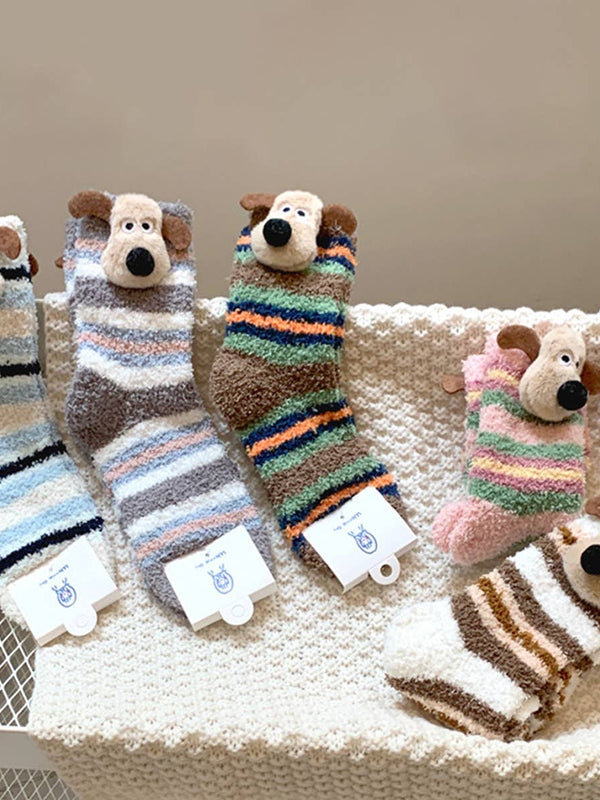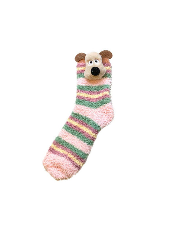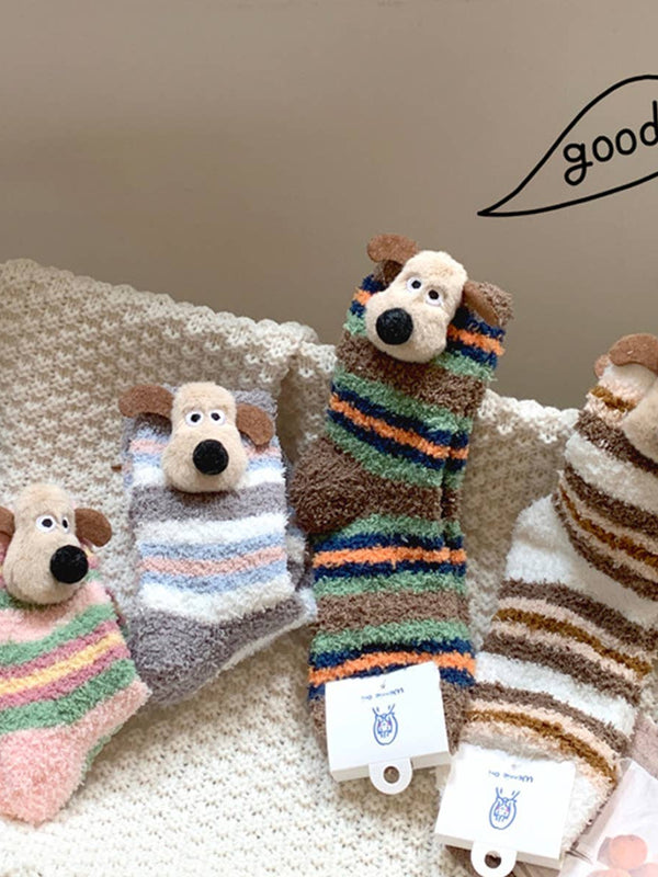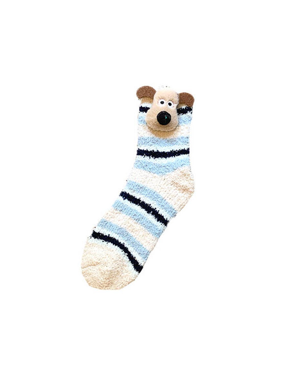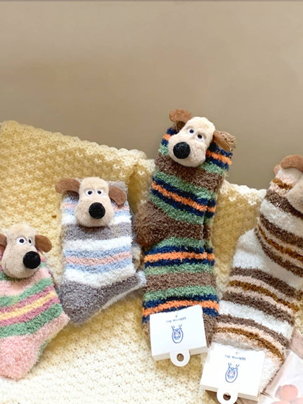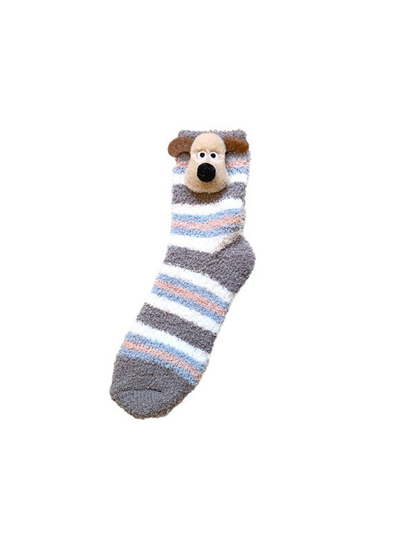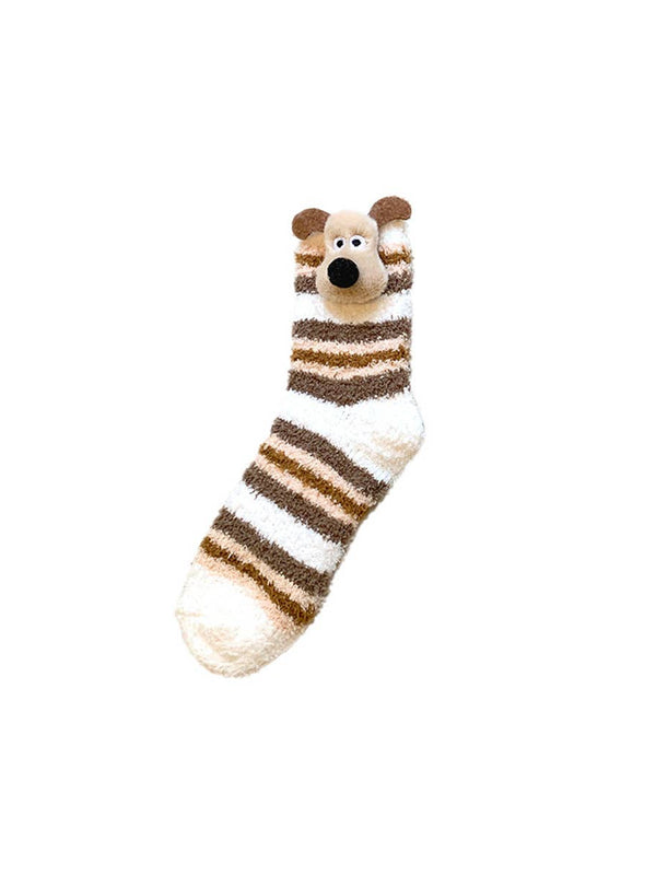 Cute Puppy Fleece 3D Slouchy Floor Socks_Cwms03223