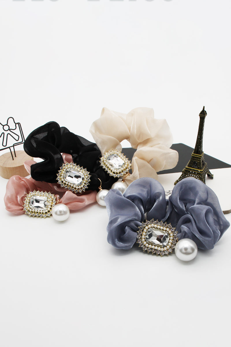 PEARL DECOR SOLID COLOR SCRUNCHIE