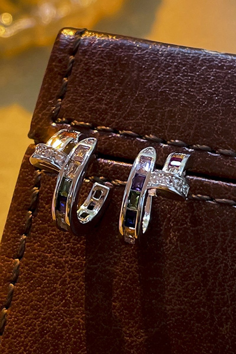 COLORED GEM DECKED C TYPE DANGLE EARRINGS