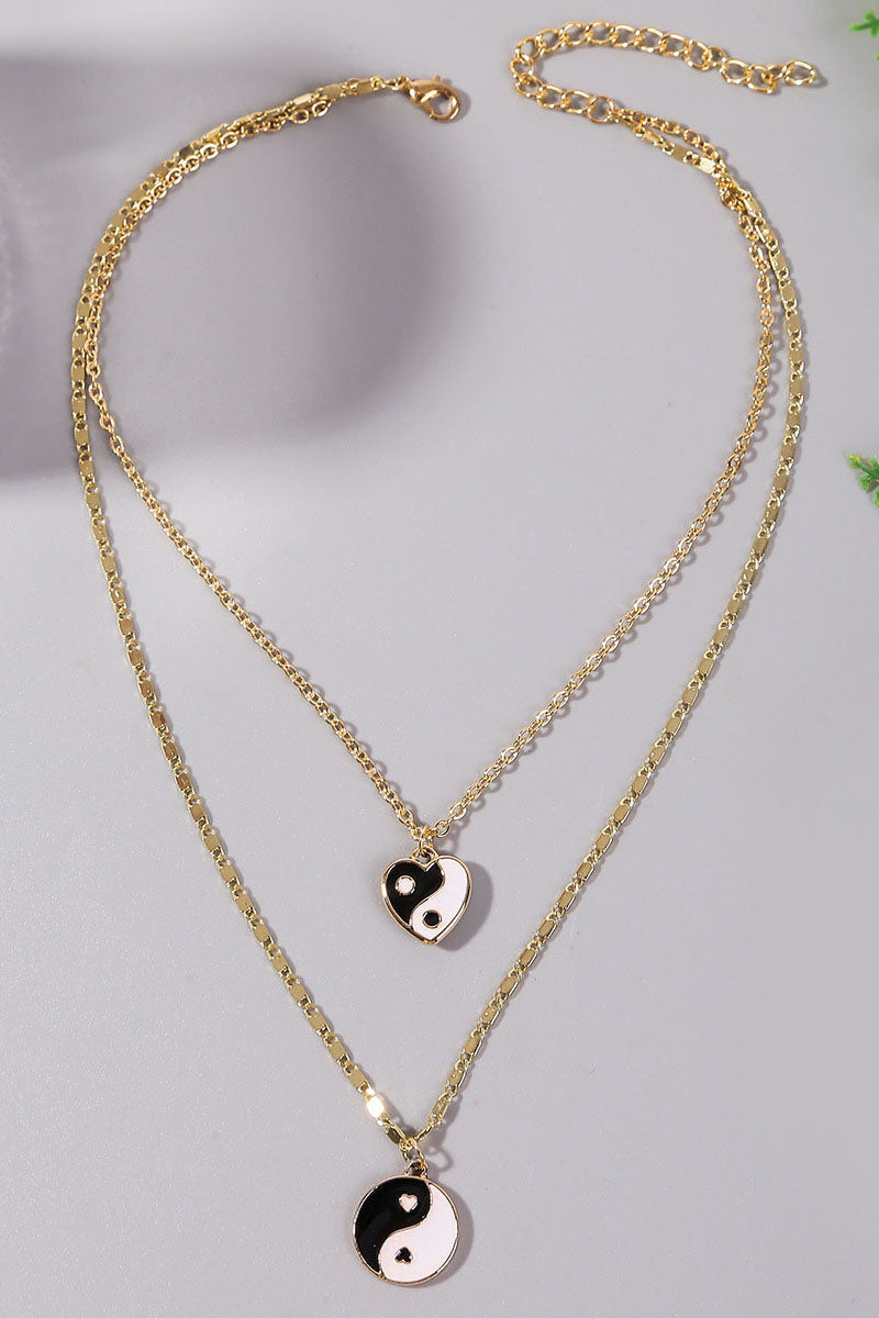 xHEART CHARM LAYERED NECKLACE, SIZE:OS, 100% ALLOY, MADE IN CHINA, Yin & Yang Charm Necklace