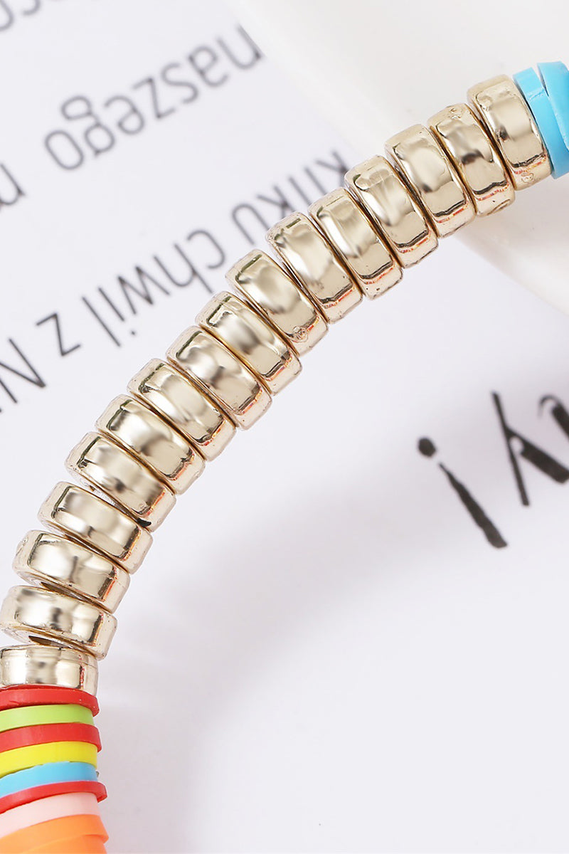 x6PCS COLORFUL BEADED BRACELET, 6PCS PER 1 PACK, SIZE:OS, 100% POLYMER CLAY, MADE IN CHINA